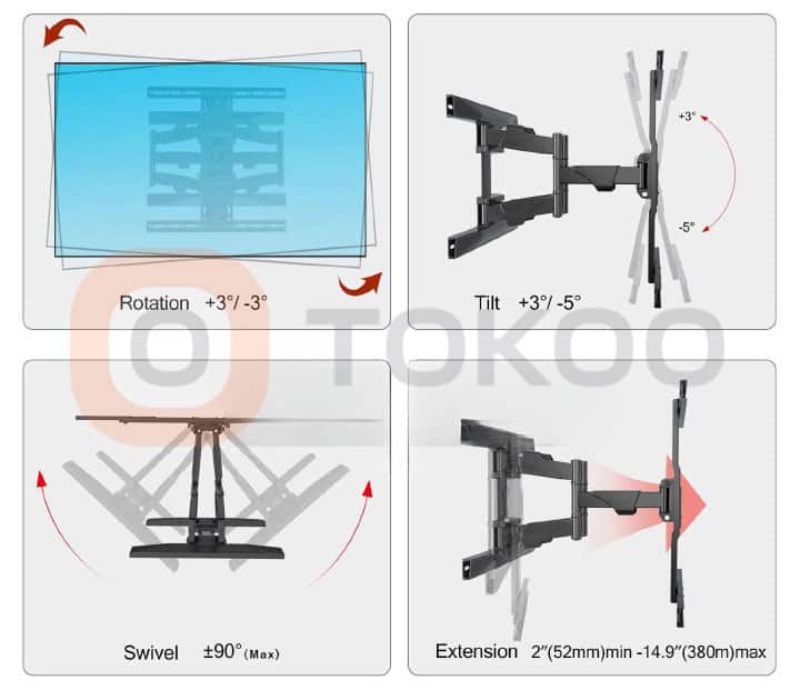 - Với giá đỡ tivi chuyển động đầy đủ này, bạn có thể dễ dàng sửa chữa nghiêng mở rộng và xoay tivi và mọi góc nhìn bạn muốn.