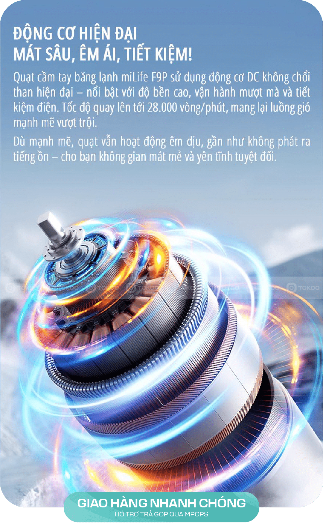Quạt cầm tay băng lạnh miLife F9P chính hãng giá rẻ tại Hà Nội, TP.HCM. Hotline đặt hàng Quạt cầm tay băng lạnh miLife F9P: 0988 009926, 0984 3112 30. Giao hàng toàn quốc. Trong những ngày hè oi ả, việc tìm kiếm một giải pháp làm mát tiện lợi và hiệu quả là điều rất cần thiết. Quạt cầm tay băng lạnh miLife F9P chính là một sản phẩm lý tưởng giúp bạn giảm bớt cái nóng khó chịu. Với nhiều tính năng nổi bật, sản phẩm này không chỉ giúp làm mát mà còn mang đến nhiều tiện ích cho người sử dụng. Hãy cùng tìm hiểu chi tiết về thiết kế, hiệu năng và lợi ích của quạt cầm tay miLife F9P trong bài viết này.