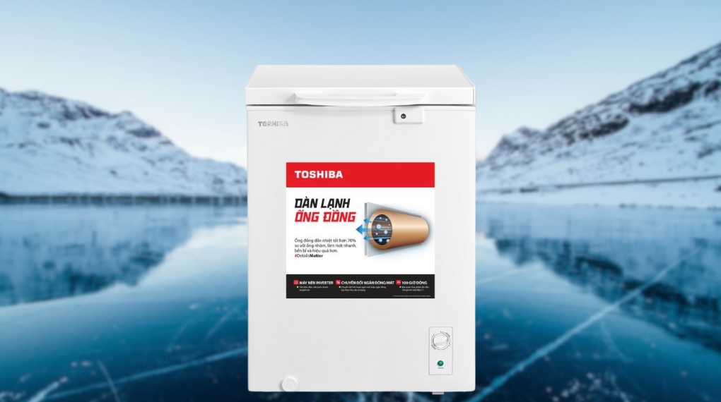 Dung tích ~ 201 lít phù hợp cho gia đình, cửa hàng nhỏ hoặc nhu cầu bảo quản vừa phải. Máy nén Inverter giúp tiết kiệm điện so với các loại tủ truyền thống. Khả năng giữ lạnh lâu khi mất điện (khoảng 100 giờ) là một điểm mạnh nếu khu vực thường xuyên mất điện. Thiết kế tiện dụng: giỏ đồ tháo rời, nắp nâng ổn định, bánh xe di chuyển, khóa an toàn,… Ống đồng làm lạnh tốt, bền hơn, ít bị oxy hóa so với ống nhôm. Thương hiệu uy tín – Toshiba có mạng lưới bảo hành rộng.
